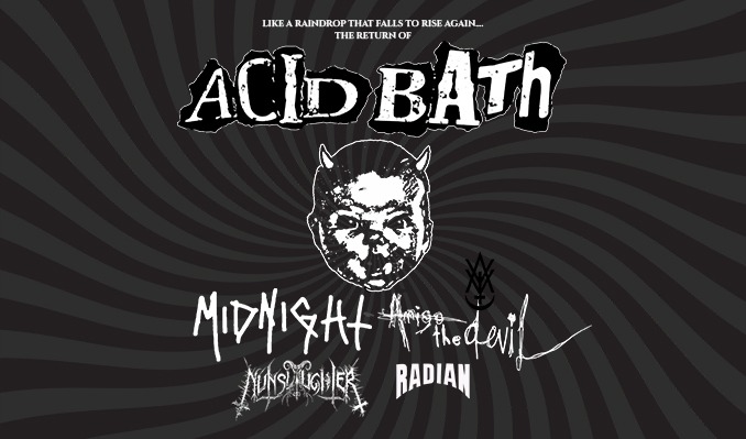 Following up on the band’s two “sold-out-in-minutes” New Orleans shows this past April at The Fillmore, ACID BATH are on a triumphant reunion run, selling out shows in front of 2,000 - 8,000 people per city thus far…a celebration of a band whose influence echoes across genres.